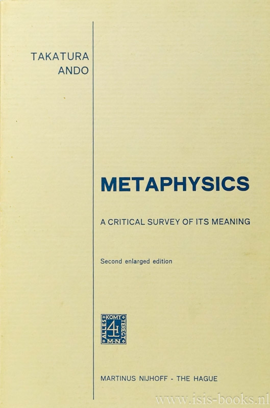 ANDO, T.Metaphysics. A critical survey of its meaning.The Hague, Nijhoff, 1974.