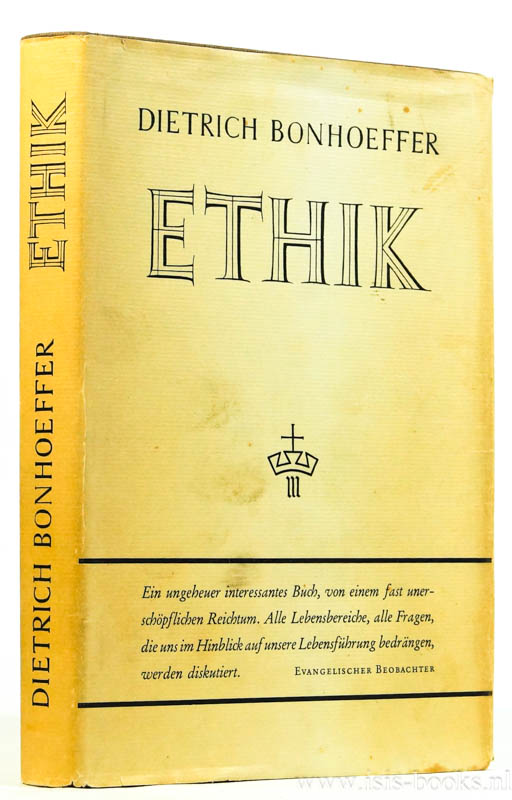 BONHOEFFER, D.Ethik. Zusammengestellt und herausgegeben von E. Bethge.München, Kaiser, 1956.