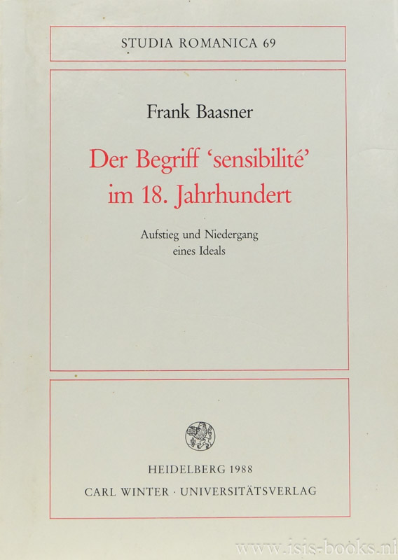 BAASNER, F.Der Begriff 'sensibilité' im 18. Jahrhundert. Aufstieg und Niedergang eines Ideals.Heidelberg, Winter, 1988.