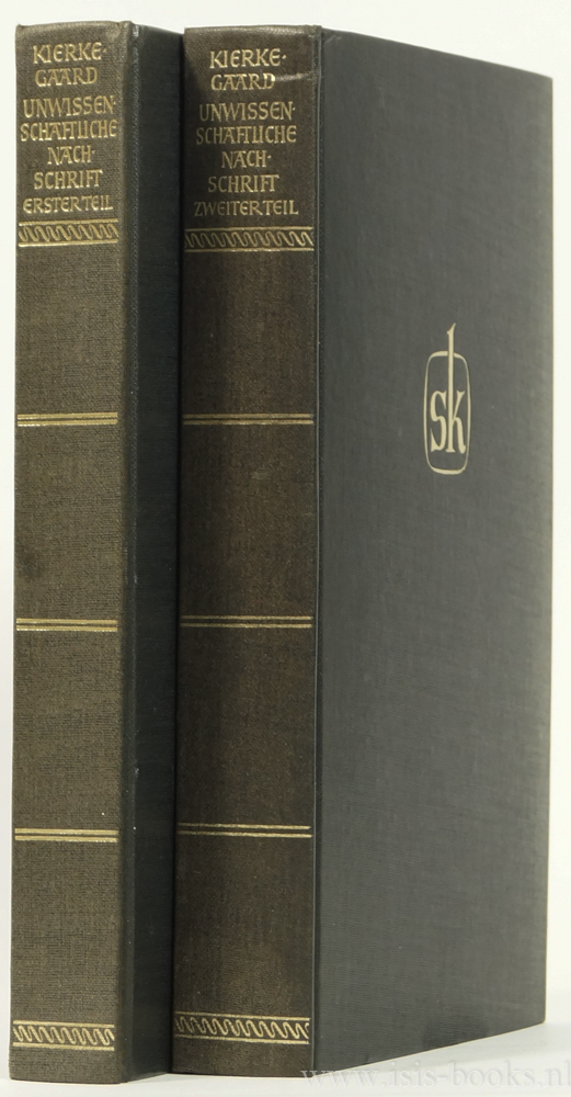 KIERKEGAARD, S.Abschliessende unwissenschaftliche Nachschrift zu den philosophischen Brocken. Übersetzt von H. M. Junghans. Complete in 2 volumes.Düsseldorf, Diederichs, 1957-58.