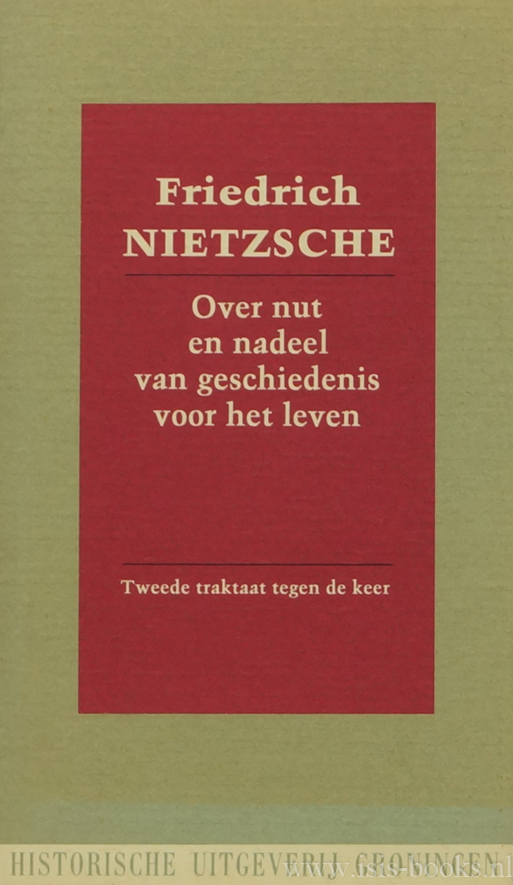 Over nut en nadeel van geschiedenis voor het leven. Tweede traktaat tegen de keer. Vom Nutzen und Nachteil der Historie für das Leben. Zweite unzeitgemässe Betrachtung 1874. Met een nawoord van F.R. Ankersmit. Nederlandse vertaling: vertalerscollectief Groningen.