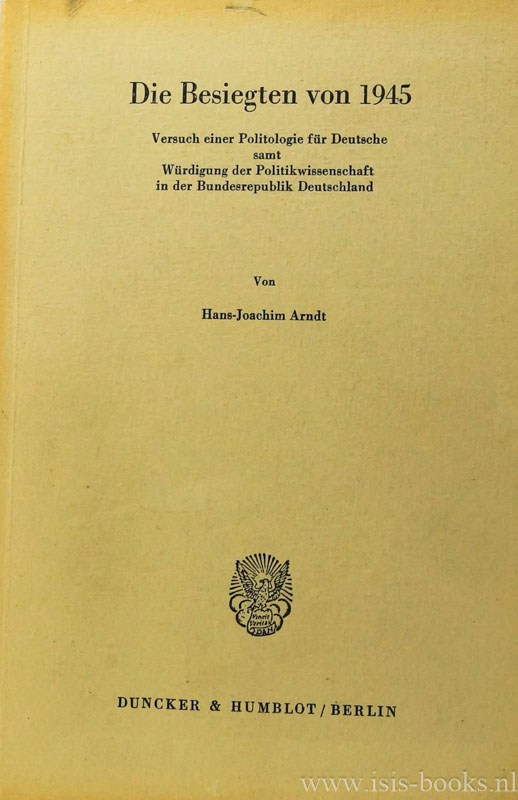 ARNDT, H.J. Die Besiegten von 1945. Versuch einer Politologie für Deutsche samt Würdigung der Politikwissenschaft in der Bundesrepublik Deutschland.Berlin, Duncker & Humblot, 1978.