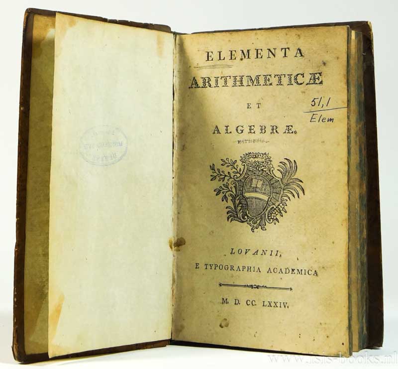 N.A., HAECHT, J. VAN.Elementa arithmeticae et algebrae. Tabulum logarithmorum, pro numeris naturali ferie cresentibus. Geometria elementaria et practica, quam in usum auditorum philosophiae nova methodo. Lovanii, Typographia Academica, 1774 - 1784.