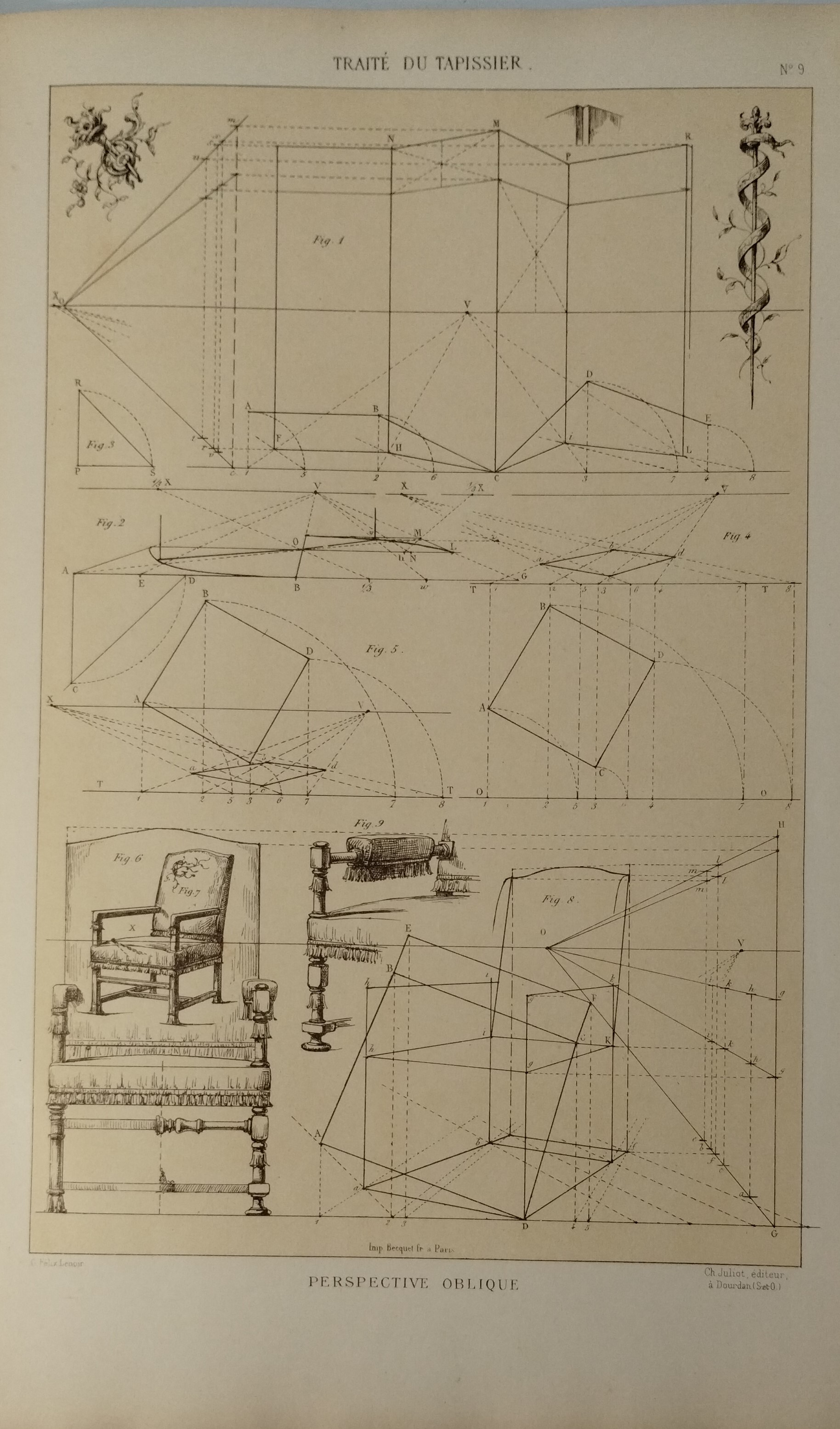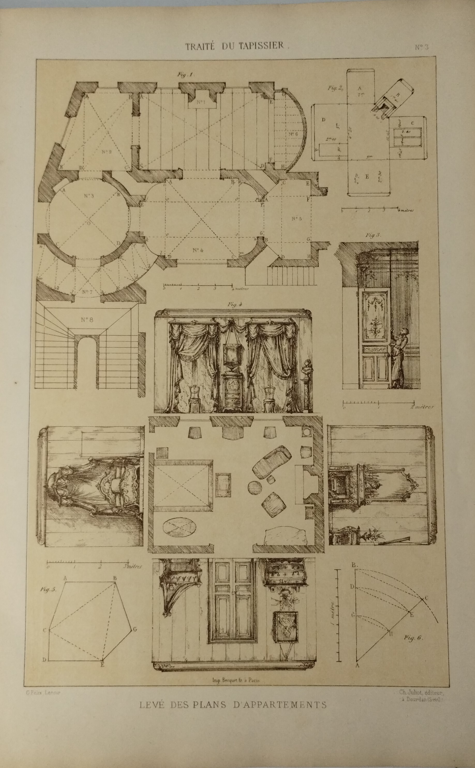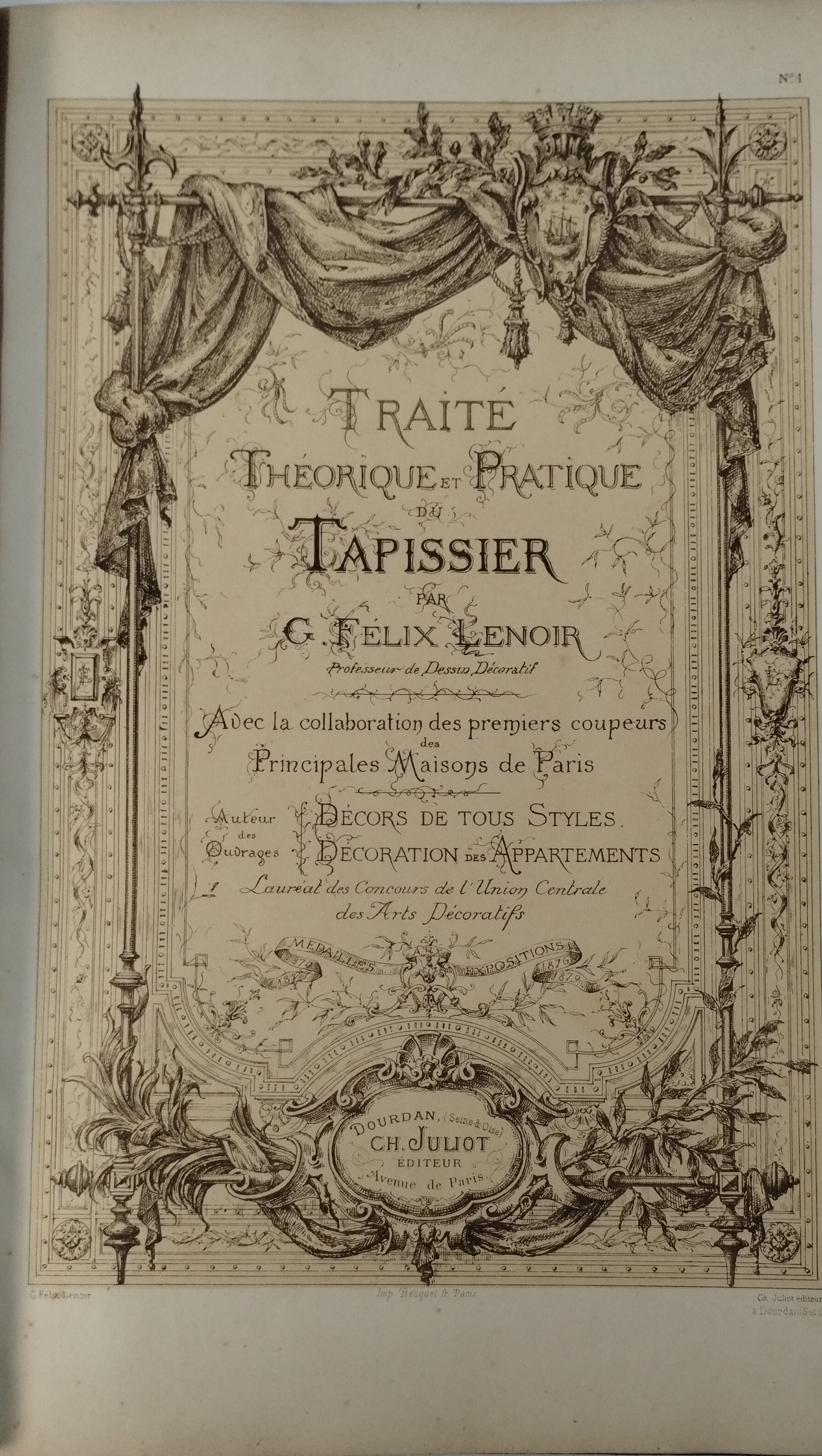 LENOIR, C.F.Traité théorique et pratique du tapissier. Avec la collaboration des premiers coupeurs principales des Maisons de Paris. Paris, Ch Juliot, ( ca 1900).