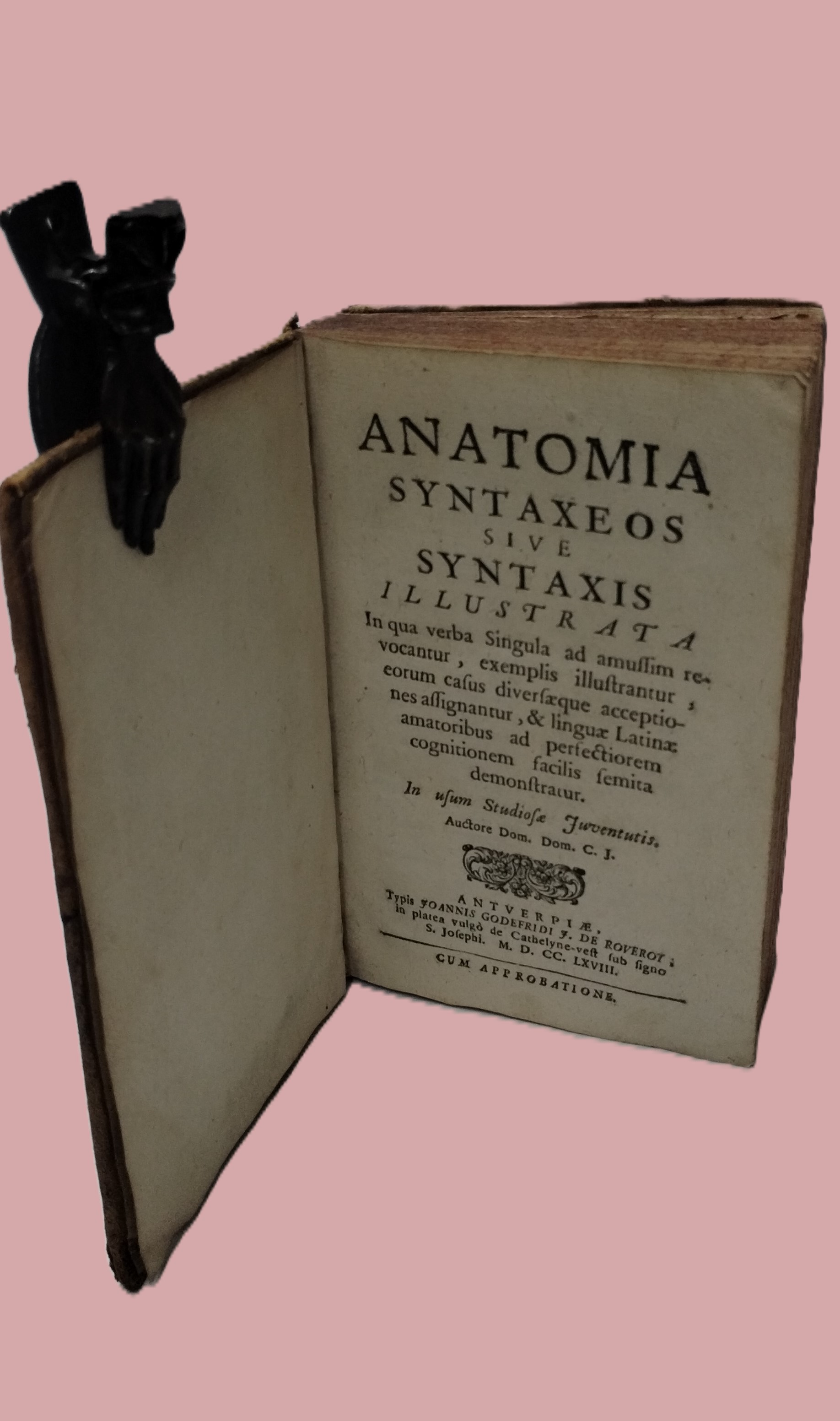 C.J. Anatomia syntaxeos sive syntaxis illustrata in qua verba singula ad amussim revocantur, exemplis illustrantur, eorum casus diversaeque acceptiones assignantur, & linguae Latinae amatoribus ad perfectiorem cognitionem facilis femita demonstratur. In usum studiosae juventutis. Antwerpen, Joannis Godefridi J de Roveroy, 1768.