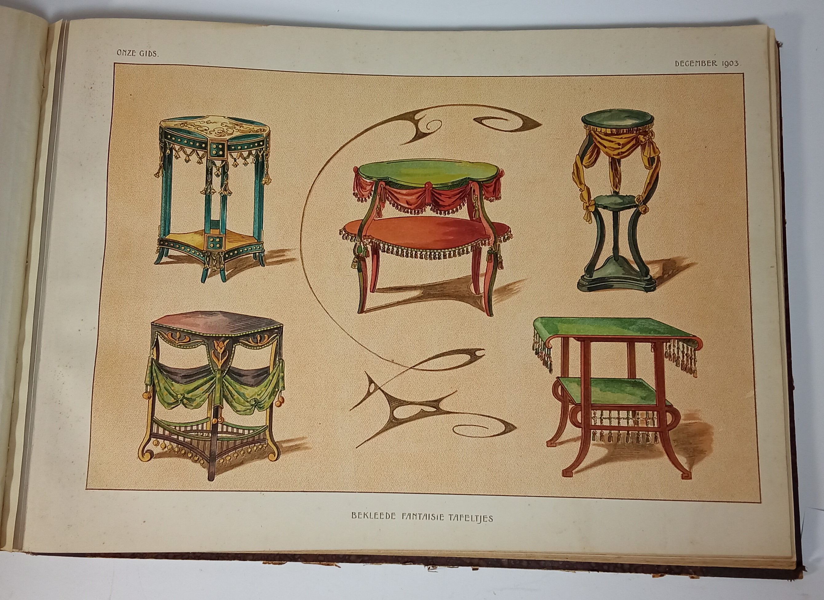 ONZE GIDS Band met 54 fraaie kleurenlithos van binnendecoraties uit de jaren 1903 t/m 1908. Zp , zu, 1903-1908.