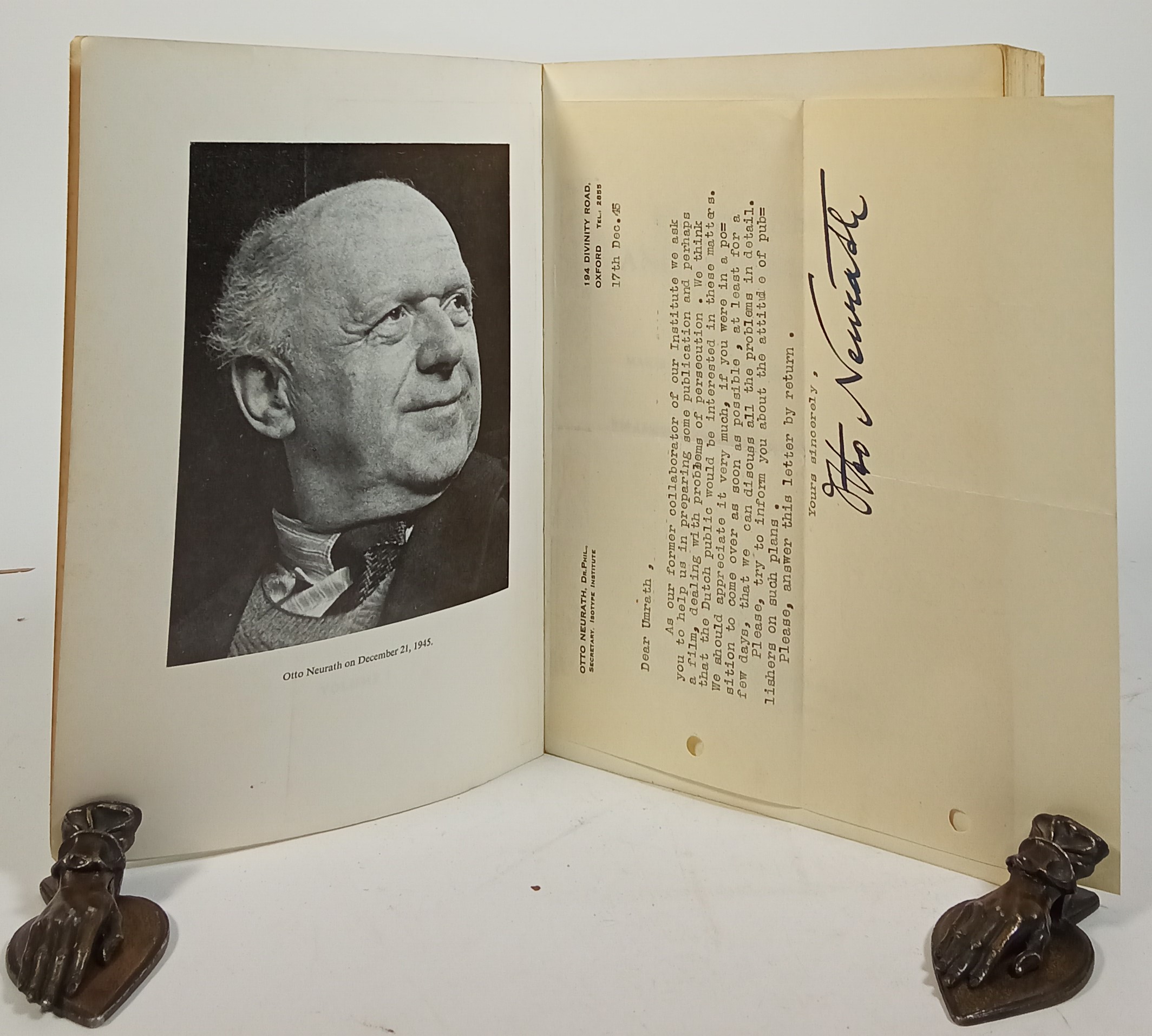 With a hand signed letter by Otto Neurath to (Heinz?) Umrath dated 5 days before Neurath's death