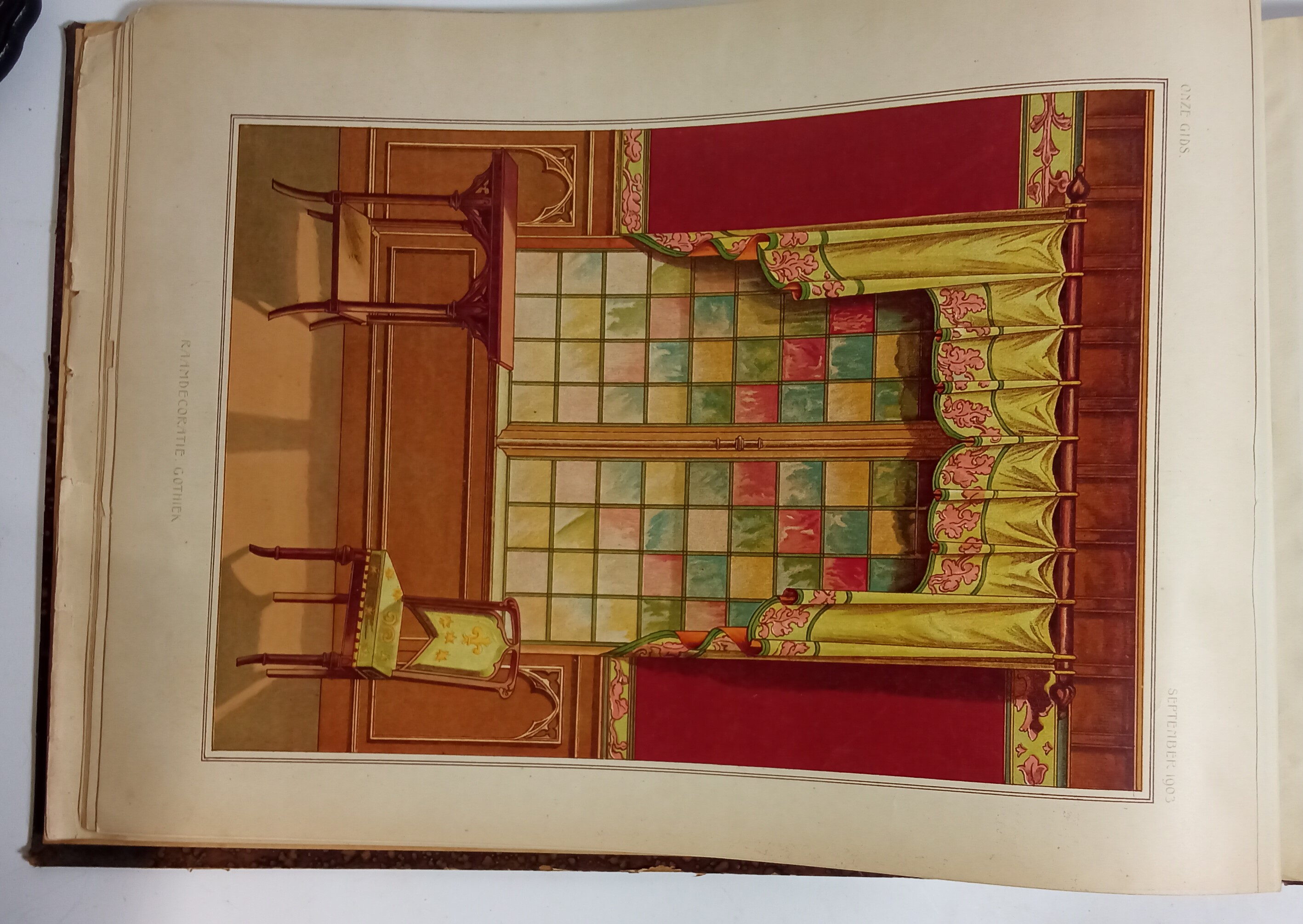 ONZE GIDS Band met 54 fraaie kleurenlithos van binnendecoraties uit de jaren 1903 t/m 1908. Zp , zu, 1903-1908.