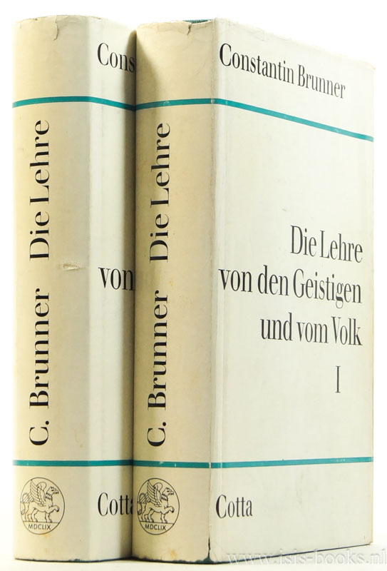 BRUNNER, C. (LEOPOLD WERTHEIMER)Die Lehre von den Geistigen und vom Volk. 2 volumes.Stuttgart, Cotta, 1962.