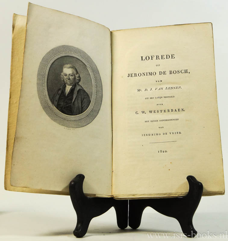 BOSCH, JERONIMO, DE. LENNEP, D.J. VANLofrede op Jeronimo de Bosch. Uit het Latijn vertaald door C.W. Westerbaen. Met eenige aanteekeningen an Jeronimo de Vries.Zp , zu, 1820.