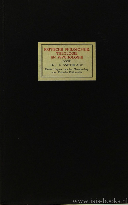 SNETHLAGE, J.L.Kritische philosophie, theologie en psychologie.Arnhem, Van Loghum Slaterus, 1927.