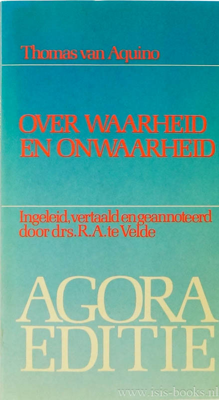 THOMAS OF AQUINO, THOMAS VAN AQUINOOver waarheid en onwaarheid. De veritate et falsitate. Ingeleid, vertaald en geannoteerd door R.A. te Velde.Kampen, Kok Agora, 1988.