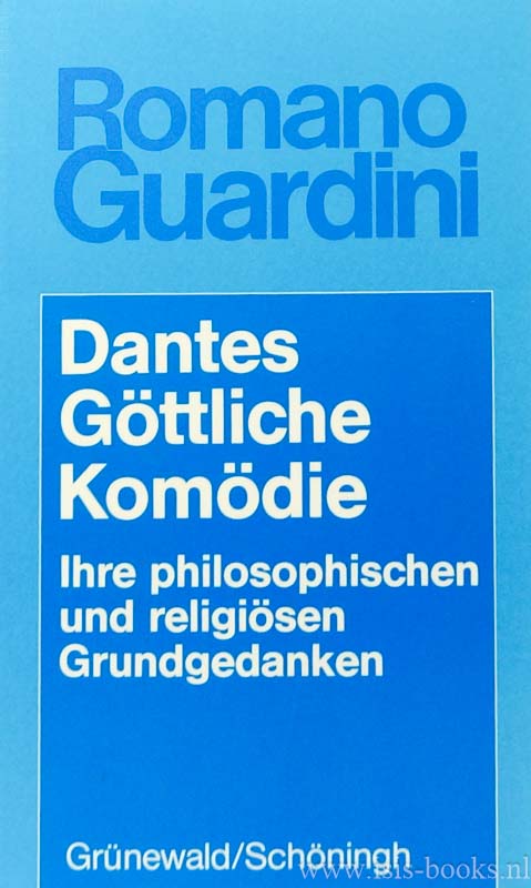 DANTE ALIGHIERI, GUARDINI, R.Dantes Göttliche Komödie. Ihre philosophischen und religiösen Grundgedanken. (Vorlesungen). Aus dem Nachlass herausgegeben von Hans Mercker. Unter Mitarbeit von Martin Marschall.Mainz, Grünewald, 1998.