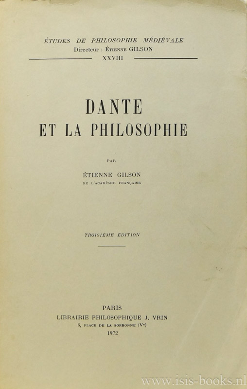 DANTE ALIGHIERI, GILSON, É.Dante et la philosophie.Paris, Vrin, 1972.